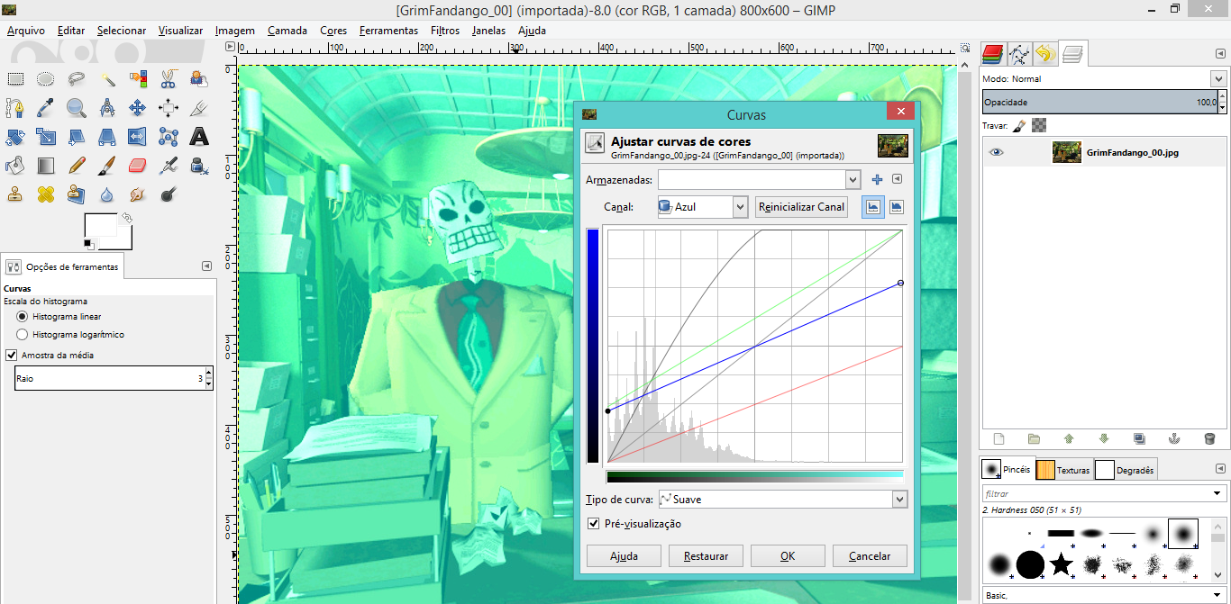 O canal valor é o que sabemos sobre o brilho e contraste. Cada ponto no histograma significar mais brilho ou menos brilho, mais contraste e menor contraste. No entanto você, leitor, deve pensar. Que redundância em ter um mapa de curvas se podemos ir na janela de brilho e contraste e obter o mesmo resultado. Mas ressalto, não, tem o mesmo resultado. Na janela de brilho e contraste você alimenta a propriedade em escala linear. Ou seja, digamos que o brilho máximo é 100 e o menor é 0. O brilho vai galgar uma posição entre esses valores, como sendo um inteiro.