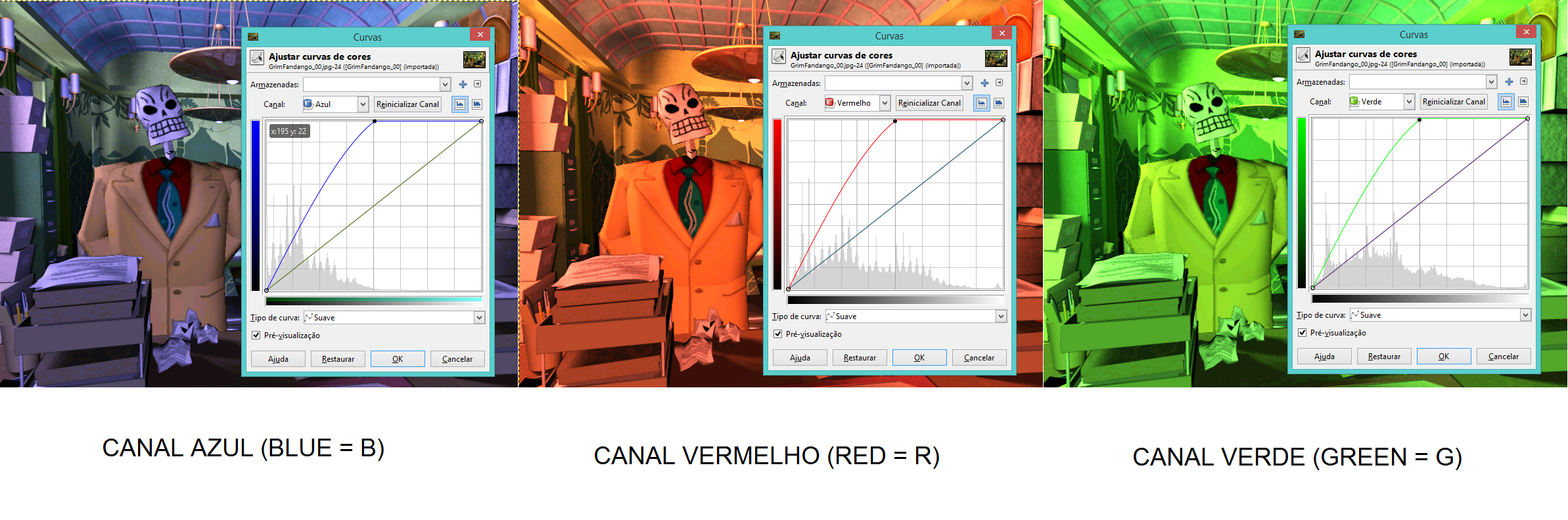 Mapa de curvas ou apenas curves, é um gráfico em formato de histograma cartesiano que apresenta o sistema de cores RGB, o canal valor e Alpha, para lidarmos com as cores, níveis de preto e branco de uma imagem. Nesta parte do tutorial vamos entender o que é valor e Alpha e vermos os exemplos que o mapa de curvas se apresenta.