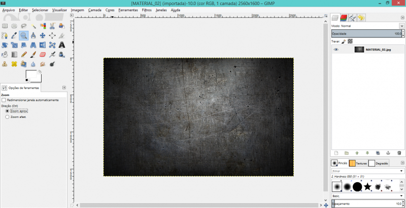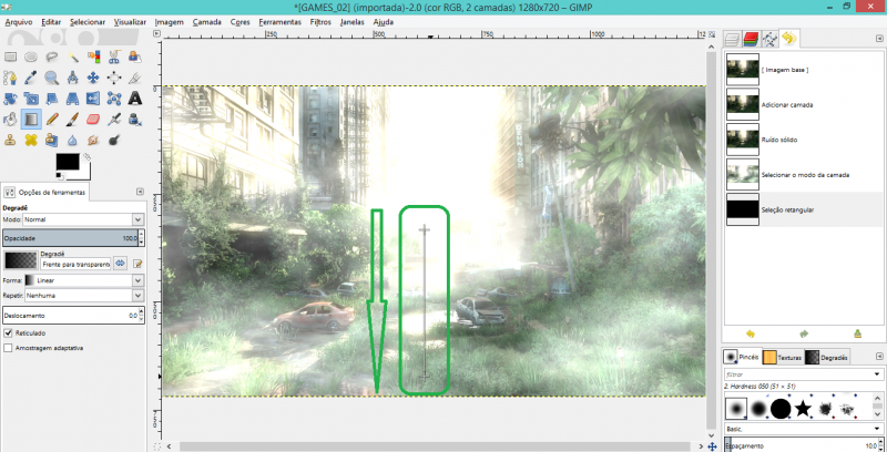 Esta é a tela final que vamos trabalhar na parte 2 deste tutorial, que é a aplicação á ferrugem. Que em tema de tutorial, tem haver com ‘Unindo camadas’.
