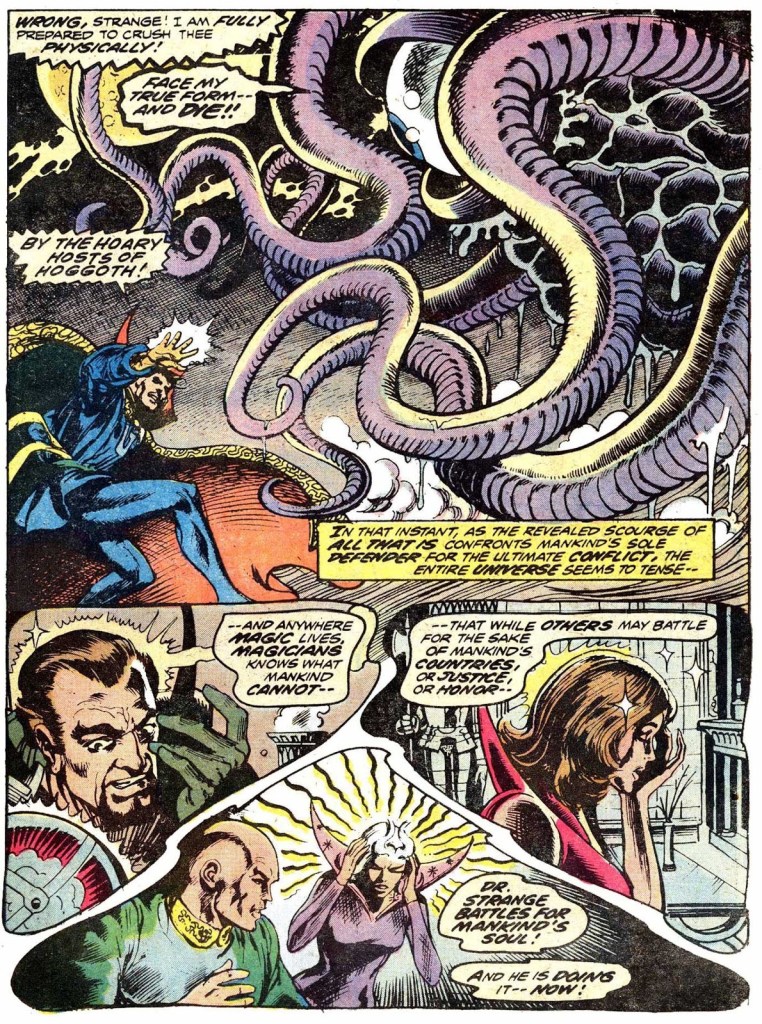 Mas esse tipo de ocupação se tornou viável após a morte do ancião pelo próprio Dr. Estranho. Vamos contextualizar. Em 1973 na história da Marvel Premiere 10 – “Finalmente, Shuma Gorath” toma a mente do mago Gao para invadir a dimensão da terra-616. Para evitar que ele de fato invada, o ancião segura ele no corpo, o problema é que não consegue mandá-lo embora por estar muito incapacitado, aí entra o Dr. Estranho que precisa acabar com a única forma do deus invadir.