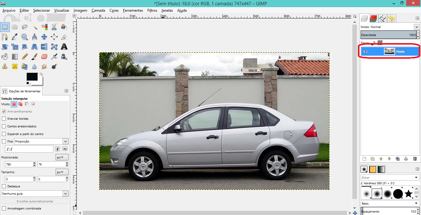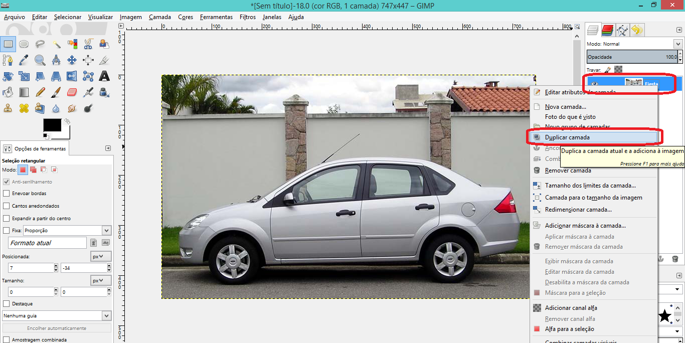 Este tutorial irá ensinar como usar camadas da forma mais fácil, e ensinar o conceito também. Que servirá como pano de fundo para as diversas formas de editar ou criar uma imagem. Como exemplo, temos este Fiesta, e vamos usar as camadas para ‘dividi-lo’.  Nós vamos até apenas a parte de dividi-lo. Fica para uma próxima, como unir estas partes com as devidas modificações á gosto.